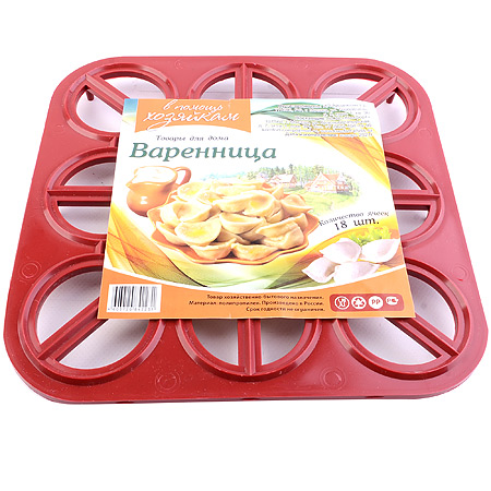 ОписаниеФорма для изготовленгия варенников - незаменимый аксессуар на вашей кухне. Форма поможет изготовить 18 варенников за раз. Варенница изготовлена из пищевого полипропилена - безопасного и прочного материала. Форма операется на 12 ножек, благодаря чему можно смело прокатываться по поврехности скалкой. Варенница имеет отверстия оригинальной формы - полукругом. Благодаря такой форме в варенники помещается много начинки. Также форму можно использовать для пельменей.Изделие удобно в эксплуатации, легко моется, не занимает много места на столе. Яркий цвет корпуса радует глаз и поднимает настроение.