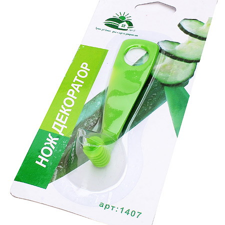 Фигурный нож для резки овощей изготовлен из пищевого пластика. Нож позволит быстро и легко нарезать овощи спиралью. Отлично подходит для огурцов, редиса и других овощей. Благодаря этому ножу можно эффектно украсить блюда. Нож компатный, его удобно хранить, не занимает много места. Его можно мыть в посудомоечной машине. Благодаря отверстию на ручке, его можно подвесить на ключок. Нож прост и удобен в применении, им может пользоваться даже ребенок под присмотром взрослых.