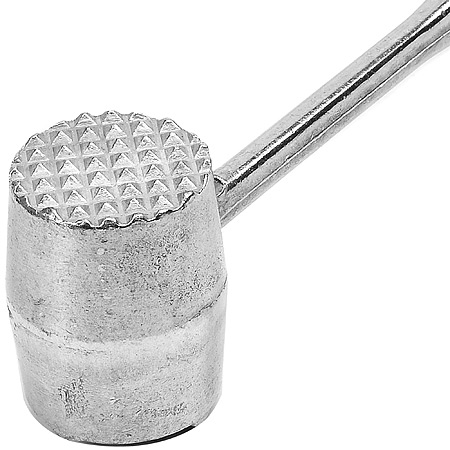 Классический молотов из металлического спллва прост и надежен в обращении. Молоток имеет 2 рабочие поверхности круглой формы: с крупными и мелкими зубцами. Ручка длинной 19 см расширяется на конце, что позволяет крепко держать молоток в руках. при помощи данного прибора можно сделать мясо мягким, сокращая время приготовления. Благодаря компатным размерам его удобно хранить.