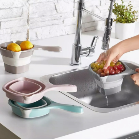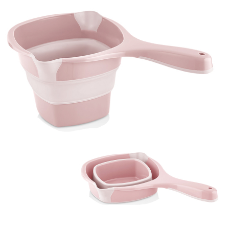 Складной ковшик — незаменимый помощник в хозяйстве, позволяющий сэкономить пространство. Он служит душевой лейкой, ковшом для купания, лейкой для комнатных растений, мытья фруктов и овощей, а также садовой лейкой. Изготовленный из пищевого пластика, пластиковый ковшик подходит для использования на кухне, в бане, сауне и ванной комнате. Благодаря лёгкому пластиковому силиконовому корпусу и нескользящей ручке, он безопасен для купания новорождённых малышей. Складной ковшик с носиком удобен для походов, отдыха на природе, кемпинга, туризма и рыбалки. В сложенном виде он занимает мало места и легко помещается в специальное отверстие для подвешивания. Объём ковша составляет 1 литр, что позволяет использовать его для различных хозяйственных нужд.