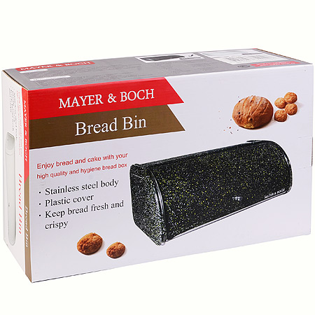 ОписаниеХлебница MAYER&BOCH позволит надолго сохранить свежесть, мягкость, аромат хлеба и других хлебобулочных изделий. Хлебница выполнена в классическом дизайне из нержавеющей стали. Сталь не окисляется, не ржавеет и не вступает в реакцию с пищевыми продуктами - это прочный и неприхотливый в уходе материал. Хлебница снабжена удобной крышкой. Хлебница имеет компактные размеры, поэтому не займет много места. Эксклюзивный дизайн, эстетика и функциональность хлебницы делают ее превосходным аксессуаром на Вашей кухне.
