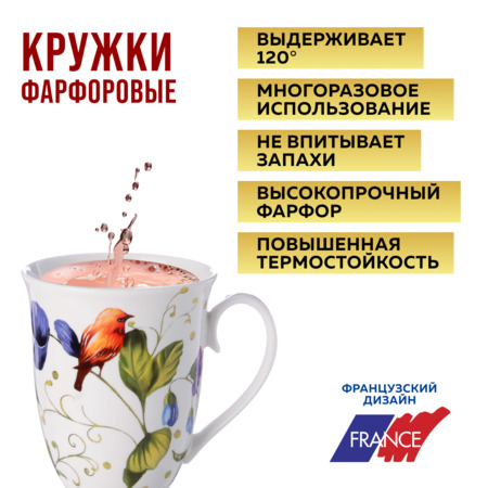 Набор кружек из 4 штук LORAINE - отличный выбор для повседневной жизни и праздничных мероприятий. Изготовленные из прочного фарфора, эти кружки для чая прослужат вам долгое время, сохраняя свой первозданный вид и яркость красок. Поэтому, даже спустя несколько лет, кофейный набор будет выглядеть точно так же, как и в день, когда вы начали им пользоваться. Нежные оттенки и рисунок делают их изысканными и элегантными. Чашки имеют удобные и изящные ручки обеспечивают комфорт во время чаепития. Холодными вечерами из этой красивой посуды приятно выпить чая за просмотром любимого сериала, а ранним утром взбодриться глотком горячего кофе планируя список дел на день. Кружки большие, поэтому не стоит беспокоиться, что любимый напиток быстро закончится и вы не успеете им насладиться в полной мере. Стильный дизайн чашек придется по вкусу и ценителям классики, и тем, кто предпочитает утонченность и элегантность. Стильные и универсальные, они подойдут как для горячих, так и для холодных напитков, чая и кофе. Набор чашек отлично подойдет для вашего дома и впишется в любой интерьер, благодаря своему красивому дизайну. Он станет прекрасным дополнением к вашему чаепитию вместе с семьей или друзьями. Можно использовать в микроволновой печи и посудомоечной машине, а это в свою очередь позволяет сэкономить огромное количество времени и сил. Использование этих кружек будет делать каждый новый день настоящим праздником и принесет эстетическое удовольствие. Изделие упаковано в индивидуальную коробку и станет красивым и полезным подарком для ваших любимых.