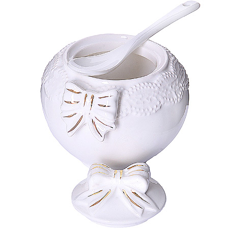 ОписаниеСахарница изготовлена из фарфора высокого качества. Сахарница закрывается удобной крышкой. Такая сахарница понравится любителям оригинального дизайна и станет неотъемлемым атрибутом чаепития. Предметы набора можно мыть в посудомоечной машине. Не применять абразивные моющие средства.
