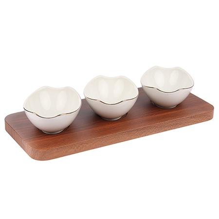 Менажница LORAINE — настоящая находка для тех, кто стремится превратить обыденный прием пищи в настоящий праздник вкуса и эстетики. Посуда для сервировки выполнена из высококачественной керамики, известной своими превосходными эксплуатационными характеристиками и непревзойденной красотой. Белый цвет подчеркивает чистоту и благородство материала, придавая изделию особую элегантность. Набор менажниц состоит из 3 отдельных тарелок для нарезки, сладостей, соединенных между собой для максимального удобства использования. Каждая секция имеет объем 125 мл, что позволяет одновременно подавать несколько видов закусок, десертов, фруктов, сыров, орехов, соусов, снеков, сухофруктов, варенья, меда и конфет. Устойчивая подставка облегчает перенос блюда, обеспечивая надежность и безопасность при использовании. Такое решение делает менажницу не только стильным аксессуаром, но и практичным инструментом для создания красивой сервировки. Блюдо подходит для различных типов мероприятий — от семейного ужина до званого обеда, позволяя продемонстрировать гостям ваш вкус и внимание к деталям. Прочность и долговечность керамики гарантируют, что подарочная посуда сохранит свой первоначальный вид и функциональность на протяжении многих лет. Оформление каждой секции отличается оригинальностью и изысканностью, привлекая внимание и вызывая восхищение у всех присутствующих. Стильный дизайн гармонично сочетается с любым интерьером, добавляя нотку роскоши и уюта в атмосферу помещения. Этот набор посуды не только удобен в использовании, но и функционален. Он позволяет эффектно подать разнообразные блюда, будь то холодные закуски, горячие мясные блюда, свежие салаты или изысканные десерты, а также собрать сырную тарелку или пивную тарелку. Каждое угощение будет выглядеть аппетитно и привлекательно, благодаря продуманному разделению на порции. Менажница керамическая станет настоящим украшением вашей кухни и отличным подарком для друзей и близких, которые ценят эстетичную посуду и изысканную сервировку.