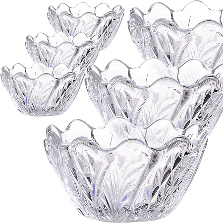 ОписаниеНабор из 6-ти пиал выполнен из качественного стекла. Пиалы прекрасно подходят дла подачи варенья, ждемов, дисертов, орехов и сухофруктов, также их можно использовать для подачи мороженного или в качестве салатника. Стекло не впитывает запахи, легко моется. Вареницы имеют изящную форму и оригинальный узор, благодаря чему станут прекрасным украшением для праздничеого стола. Прекрасно подойдут в качестве подарка для друзей, родных и близких.