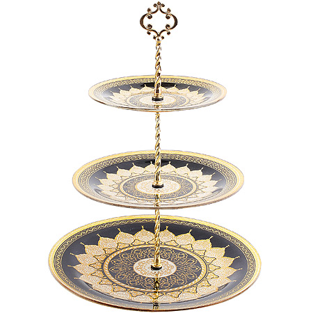 ОписаниеКрасочное 3-ярусное блюдо, выполненное из высококачественного стекла, сочетает в себе классический дизайн с максимальной функциональностью. Блюдо предназначено для красивой подачи конфет, фруктов и десертов. Тарелочки конфетницы имеют яркое красочное покрытие и оформлены блестящим узором. Прочная стойка-держатель и плоская ножка конфетницы выполнена из металла. Высота конфетницы в собранном виде составляет 38 см. Элегантная конфетница украсит сервировку Вашего стола и подчеркнет прекрасный вкус хозяйки, а также станет отличным подарком. Изделие упаковано в индивидуальную коробку.