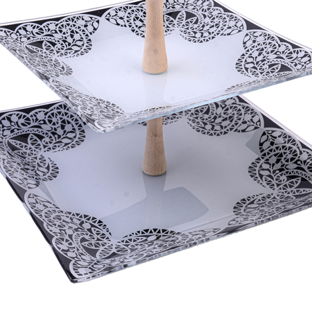 Элегантная двухъярусная конфетница является великолепным дополнением любого праздничного стола. Она создана для того, чтобы украсить подачу различных сладостей, конфет, фруктов, орехов, пирожных, а также для сервировки овощных и мясных закусок. Эта оригинальная посуда для сервировки выполнена из высококачественного стекла, придающего ей роскошный оттенок. Двухъярусная конструкция блюда для подачи позволяет максимально эффективно использовать пространство, вмещая большое количество угощений. Уникальная форма каждого уровня этажерки создает дополнительную эстетику и позволяет наслаждаться каждой деталью. Верхний ярус украшен элегантной ручкой, а нижний ярус оформлен в виде устойчивого основания, обеспечивающего надежность всей конструкции. Дизайн этой конфетницы был тщательно продуман, чтобы она не только радовала глаз, но и была функциональна. Устойчивость сервировочной посуды, простота в использовании делают ее незаменимой на любом празднике или торжестве. Важным преимуществом данной этажерки является ее универсальность – она отлично подходит как для повседневного использования, так и для особых случаев. Компактные размеры позволяют ей гармонично вписаться в любой интерьер, привнося атмосферу утонченность и элегантность. Эта фруктовница этажерка будет идеальным подарком для людей, ценящих красоту и комфорт в быту. Этажерка для фруктов и конфет – это не просто декоративный элемент, а настоящее произведение искусства, способное превратить обычную трапезу в настоящий праздник вкуса и эстетики.