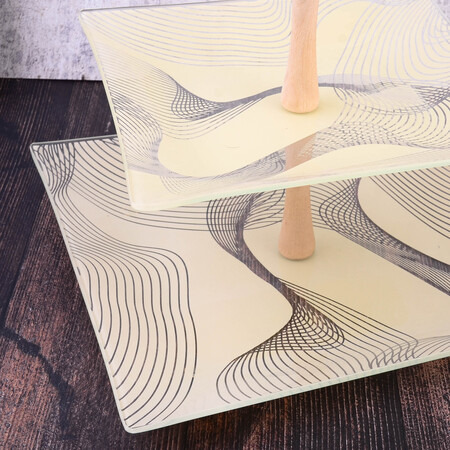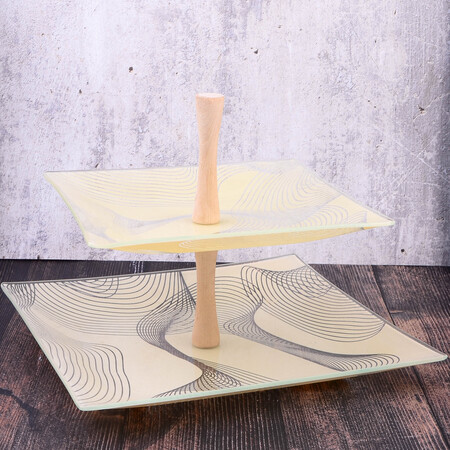 Элегантная двухъярусная конфетница является великолепным дополнением любого праздничного стола. Она создана для того, чтобы украсить подачу различных сладостей, конфет, фруктов, орехов, пирожных, а также для сервировки овощных и мясных закусок. Эта оригинальная посуда для сервировки выполнена из высококачественного стекла, придающего ей роскошный оттенок. Двухъярусная конструкция блюда для подачи позволяет максимально эффективно использовать пространство, вмещая большое количество угощений. Уникальная форма каждого уровня этажерки создает дополнительную эстетику и позволяет наслаждаться каждой деталью. Верхний ярус украшен элегантной ручкой, а нижний ярус оформлен в виде устойчивого основания, обеспечивающего надежность всей конструкции. Дизайн этой конфетницы был тщательно продуман, чтобы она не только радовала глаз, но и была функциональна. Устойчивость сервировочной посуды, простота в использовании делают ее незаменимой на любом празднике или торжестве. Важным преимуществом данной этажерки является ее универсальность – она отлично подходит как для повседневного использования, так и для особых случаев. Компактные размеры позволяют ей гармонично вписаться в любой интерьер, привнося атмосферу утонченность и элегантность. Эта фруктовница этажерка будет идеальным подарком для людей, ценящих красоту и комфорт в быту. Этажерка для фруктов и конфет – это не просто декоративный элемент, а настоящее произведение искусства, способное превратить обычную трапезу в настоящий праздник вкуса и эстетики.