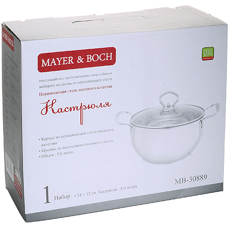 Кастрюля с крышкой MAYER&BOCH — это элегантное и надёжное решение для вашей кухни, предназначенная для истинных ценителей вкуса. Благодаря объёму в 5 литров и крышкой, вы сможете наслаждаться процессом приготовления любимых блюд, не опасаясь ожогов. Толстые стенки и дно обеспечивают равномерное распределение тепла, что гарантирует идеальное приготовление пищи. Удобные ручки, которые не нагреваются, делают процесс готовки максимально комфортным и безопасным. Эта кастрюля — ваш незаменимый помощник в искусстве приготовления пищи! С ней вы сможете творить чудеса на кухне и радовать себя и своих близких изысканными шедеврами. Изготовленная из высококачественной нержавеющей стали с зеркальной поверхностью, она обеспечит долговечность и сохранение вкусовых качеств продуктов. Она легка в уходе и не требует больших усилий при мойке. Возможность мытья в посудомоечной машине экономит ваше время и силы. Можно использовать на индукционных, электрических, стеклокерамических панелях и газовой плите. Кастрюля из нержавеющей стали — это как волшебная палочка для повара. Она может всё: варить, тушить, томить и жарить. Готовьте в ней каши, молочные блюда, овощи, яйца, мяско, наваристые супчики и бульоны, макарончики, компоты, варенье, соусы, подливы и многое другое. Кастрюля для индукционной плиты быстро нагревается и равномерно передает нагрев на всю свою поверхность индукции, благодаря особой конструкции дна. Обладает рядом преимуществ: она укомплектована крышкой, имеет высокие стенки и толстое дно, абсолютно безопасна для здоровья, не меняет цвет со временем и по доступной цене. Использование передовых технологий и высококачественных материалов гарантирует исключительное качество этой модели. Эта красивая посуда, очень полезный и нужный подарок на День рождения, Новый год, на новоселье, для мамы, бабушки или подруги.
