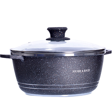 ОписаниеКастрюля с крышкой MAYER&BOCH изготовлена из литого алюминия, что исключает возможность деформации и гарантирует долгий срок службы. Утолщенное дно выполненное из алюминия, обеспечивает идеальный контакт с конфоркой и способствует равномерному разогреванию пищи. Мраморное антипригарное покрытие позволяет готовить практически не используя растительное масло, что значительно увеличивает полезность приготовляемой еды. В комплект также входит крышка из жаропрочного стекла с пароотводом.