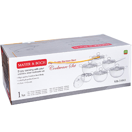 Откройте для себя новые горизонты кулинарии с набором кастрюль из нержавеющей стали MAYER&BOCH! Эти высококачественные кастрюли с толстыми стенками и дном станут вашими незаменимыми помощниками на кухне. Удобные ручки, которые не нагреваются, обеспечивают комфорт и безопасность в процессе готовки. В наборе: кастрюли объемом 2,3 литра, 3 литра, 3,8 литра, 5 литра и сотейники объемом 1,4 литра, 2,3 литра. Наши изделия выполнены из нержавеющей стали, которое обеспечивает надёжность и гарантирует долгий срок службы — как раз то, что нужно для вашей кухни! Их зеркальная поверхность не только красива, но и практична — она легко очищается от загрязнений и сохраняет свой блеск надолго. Модели идеальны для приготовления множества блюд: для варки каш, молочка, овощей, яиц, мяска, наваристых супчиков и бульонов, круп, макарошек, компотов, варенья, различных соусов и подлив, тушения и готовки горячих блюд. Посуда для индукционной плиты имеет термоаккумулирующее дно, которое быстро и равномерно накапливает тепло и также равномерно передает его пище. Такое дно позволяет готовить блюда с минимальным количеством воды и жира, сохраняя при этом вкусовые и питательные свойства продуктов. Крышки сделаны из жаростойкого стекла и оснащены удобной ручкой, отверстием для выпуска пара и металлическим ободком. Этот набор посуды для дома обладает рядом преимуществ: кастрюли имеют высокие стенки, они абсолютно безопасны для здоровья, так как не выделяют вредных веществ при контакте с пищей, долго сохраняют тепло и никогда не потемнеют. Они легко моются и не требуют особого ухода, ведь их можно мыть даже в посудомоечной машине. Благодаря передовым технологиям, изделия отличаются безупречным качеством. Их аккуратно упаковывают, чтобы вы получили товар без повреждений. Они соответствуют всем стандартам и ГОСТ, поэтому вы можете быть уверены в их надёжности и безопасности. Индукция, электрика, стеклокерамика и газ — всё под контролем. Кастрюльный рай для всех! Комплект MAYER&BOCH — идеальный подарок на праздник. Порадуйте маму, бабушку и подругу на День рождения, Новый год, новоселье, этими крутыми кастрюлями! Готовьте с удовольствием, сохраняйте вкус и пользу продуктов!