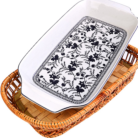 Форма для запекания MAYER&BOCH просто незаменимая посуда на кухне любой современной хозяйки, отличное решение для всех любителей блюд, приготовленных в духовке и микроволновой печи. Жаропрочная посуда изготовлена из высококачественной керамики, который выдерживает температуру от -20 до +250 градусов. Поверхность украшена изображением цветов. В комплекте: 1 форма, 1 плетеная корзинка. К форме прилагается плетеная корзинка из ротанга, выполняющая роль оригинальной подставки. Пища, приготовленная в керамической посуде, сохраняет естественный вкус и бесподобный аромат продуктов. Благодаря толстым стенкам, тепло равномерно распределяется внутри, поэтому блюдо получается сочным и нежным. В прочной и универсальной форме удобно запекать, тушить, сервировать и хранить приготовленные вами блюда. Она идеально подойдет для всех ваших кулинарных шедевров: запекания мяса, рыбы, картофеля, овощей, пасты и запеканок; для выпечки ароматных пирогов. Можно использовать в духовке, микроволновой и конвекционной печи, холодильнике и морозильной камере. Также отлично подойдет для подачи салатов, горячих блюд, овощей и фруктов. Идеальна для праздничного стола или большой семьи. Используйте ее для приготовления восхитительного обеда или ужина, и ваши гости будут приятно удивлены и восторженны. Жаровня - отличный помощник на кухне, для тех, кто любит готовить и не готов тратить много времени на ее приготовление. Изделия легко моются и не требуют специального ухода, можно мыть в посудомойке. Керамическая форма для запекания - это красивая посуда, очень полезный и нужный подарок на Новый год, Рождество, День рождения, на новоселье, для мамы, бабушки, подруги.