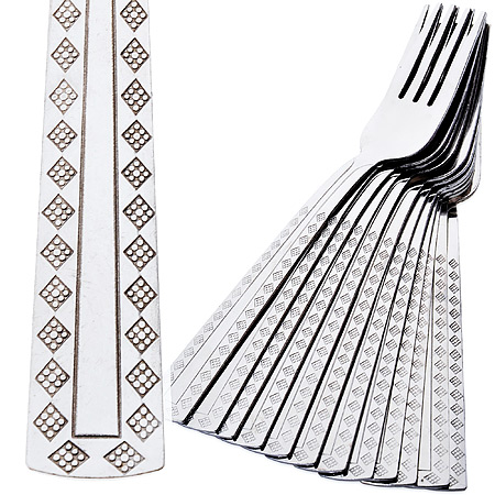 Набор из 12-ти столовых вилок MAYER&BOCH выполнен из высококачественной нержавеющей стали.. Качественная полировка обеспечивает высокую степень гигиеничности приборов. Приборы из нержавеющей стали отличаются высокими антикоррозионными свойствами и значительной устойчивостью к воздействию кислот и щелочей. Такая сталь не изменяет вкус и цвет пищи, не выделяет вредных веществ. Элегантный дизайн ручек придает вилкам особый стильный внешний вид, который будет сочетаться с любым набором посуды. Красивый и элегантный набор вилок MAYER&BOCH станет настоящим украшением любого праздничного или обеденного стола, а эстетичность столовых приборов удовлетворит запросы даже самых требовательных и взыскательных покупателей. Подходит для мытья в посудомоечной машине.