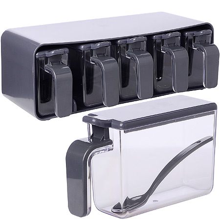 Набор: контейнеры для специй - 5 шт, подставка для контейнеров - 1 шт, ложечки - 5 шт.