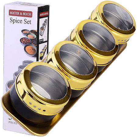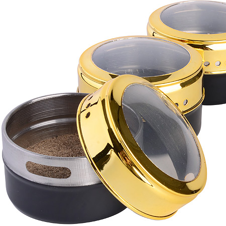 Набор 5 предметов: баночки для специй на магните - 4 шт, подставка - 1 шт.