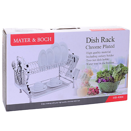 ОписаниеДвухъярусная сушилка для посуды MAYER&BOCH выполнена из высококачественной нержавеющей хромированной стали и пластика. В сушилке предусмотрены отделения для тарелок, чашек и столовых приборов. Благодаря конструкции с вместительным поддоном для сбора воды, Вы не будете тратить время на вытирание посуды после мытья. Стальная часть конструкции защищена от коррозии хромированным покрытием, что гарантирует ей продолжительное время эксплуатации и эстетичный внешний вид. Сушилка для посуды станет незаменимым помощником на кухне. Компактность сушилки позволит расположить ее по Вашему усмотрению - на свободном крыле мойки, на столешнице или в навесных шкафах кухонного гарнитура. Оригинальный и современный внешний вид идеально дополнит интерьер кухонного пространства.