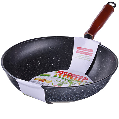 Сковорода ВОК с мраморной крошкой MAYER&BOCH имеет основу из высокопрочной стали с антипригарным покрытием. При готовке на антипригарном покрытии пища не пристает и не пригорает, а масла требуется вдвое меньше по сравнению с другими покрытиями, что позволяет приготовить здоровую, вкусную и полезную пищу без лишних жиров и оксидантов. Основа из высокопрочной стали позволяет сковороде быстро нагреваться до высокой температуры и равномерно распределять тепло по всей поверхности. Высокая теплопроводность позволяет быстро готовить даже на медленном огне, а значит, витамины и полезные микроэлементы не разрушаются и остаются в пище, что делает ее здоровой и полезной. Сковорода оснащена утяжеленным дном и удобной не нагревающейся деревянной ручкой. Подходит для использования на всех типах плит, кроме индукционных. Подходит для мытья в посудомоечной машине. Во время мытья не следует применять жесткую металлическую щетку или абразивные моющие средства во избежание повреждения покрытия и поверхности.