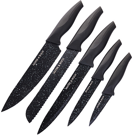 Набор ножей MAYER&BOCH состоит из 6-ти предметов. В наборе нож для очистки, поварской, хлебный, разделочный, универсальный и нож-пиллер. Все они разных размеров с лезвиями из высококачественной нержавеющей стали станет незаменимым помощником на Вашей кухне. Ножи идеально подойдут для резки как мяса и рыбы, так и сыра, фруктов и овощей. Эргономичная рукоятка каждого изделия удобно ложится в ладонь, обеспечивая безопасную работу, комфортное положение в руке, надежный захват и не дает ножам скользить при использовании. Поверхность клинков не впитывает и не «передает» запахи пищи при параллельной нарезке различных продуктов. Не подходит для мытья в посудомоечной машине. Мыть руками в теплой воде, используя моющее средство умеренной концентрации, затем ополоснуть и вытереть насухо. При необходимости ножи рекомендуется точить. Оригинальный дизайн набора и качество исполнения не оставят Вас равнодушными!