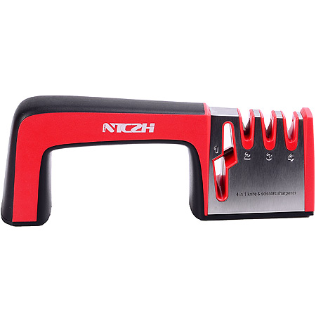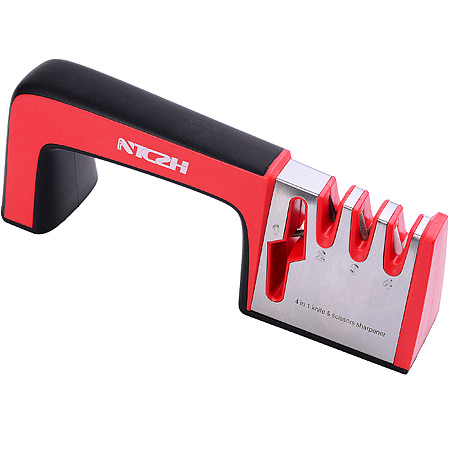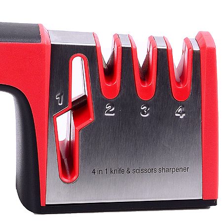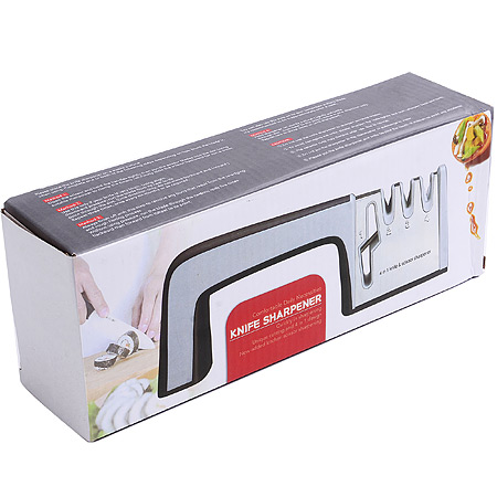 3 ступенчатая система заточки для любого типа ножей (финишная заточка, чистовая заточка, грубая заточка). Слот для ножниц.