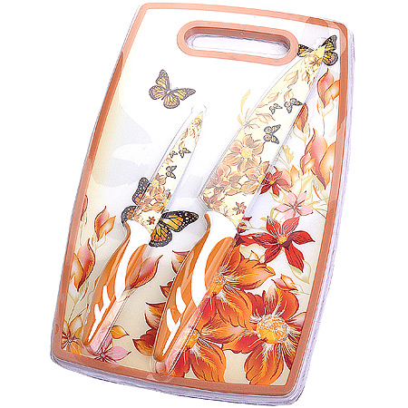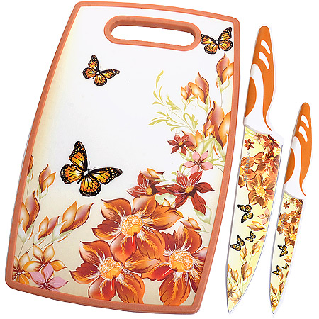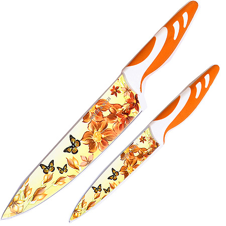 ОписаниеНабор MAYER&BOCH из 2-х ножей с лезвиями из высококачественной нержавеющей стали станет незаменимым помощником на вашей кухне. Лезвия имеют специальное антибактериальное Non-Stick покрытие, предотвращающее прилипание продуктов к лезвию ножа и обеспечивающее свежесть и гигиеничность продуктов. Лезвия ножей украшены цветным рисунком. Сечение ножей - клинообразно, что позволяет режущей кромке клинка быть продолжительное время острой. Поверхность клинков легко моется, не впитывает и не «передает» запахи пищи при параллельной нарезке различных продуктов. Набор ножей идеально подойдет для резки как мяса и рыбы, так и фруктов и овощей. Эргономичная рукоятка каждого изделия удобно ложится в ладонь, обеспечивая безопасную работу, комфортное положение в руке, надежный захват и не дает ножам скользить при использовании. Также в комплекте идет разделочная доска с красочным покрытием, имеющим 3-D эффект. Ножи мыть вручную теплой водой с мягким моющим средством. После мытья вытереть насухо.