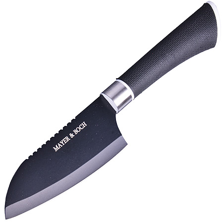 ОписаниеНабор ножей MAYER&BOCH состоит из 3-х универсальных ножей разного размера. Лезвия выполнены из высококачественной нержавеющей стали с антибактериальным Non-Stick покрытием, имеют износостойкую режущую кромку, благодаря чему ножи дольше остаются острыми, а текстурные эргономичные рукоятки ножей, выполненные из черного каучука, обеспечивают безопасную работу и комфортное положение в руке. Это прекрасные ножи для ежедневной резки фруктов, овощей и мяса. Изделия имеют гладкую, легко очищаемую поверхность. Оригинальный дизайн набора и качество исполнения не оставят Вас равнодушными. Набор MAYER&BOCH станет великолепным подарком и отлично украсит интерьер Вашей кухни. Готовьте с удовольствием!