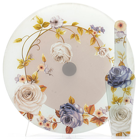 ОписаниеНабор для торта LORAINE из высококачественного стекла с декоративным покрытием включает в себя 1 большое круглое блюдо и 1 лопатку для торта. Изделия декорированы рисунком на красочном фоне и сочетают в себе изысканный дизайн с максимальной функциональностью. Оригинальность оформления набора придется по вкусу и ценителям классики, и тем, кто предпочитает сочные цвета и изящность. Такой набор послужит отличным подарком к любому празднику, а также добавит элегантности и уюта любому праздничному столу! Посуда обладает гладкой непористой поверхностью и не впитывает запахи, ее легко и просто мыть. Набор для торта упакован в стильную подарочную картонную коробку. Подходит для мытья в посудомоечной машине.