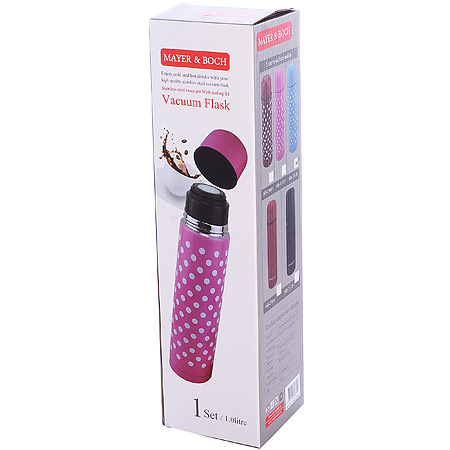 Универсальный термос объёмом 1 литр от MAYER&BOCH — это компактное и лёгкое решение для сохранения температуры ваших любимых напитков на долгое время. Благодаря этому вы сможете наслаждаться их ароматом в любой момент. Термос небольшого размера, поэтому не займёт много места и легко поместится в сумку. Это делает его отличным вариантом для работы, учёбы или длительных поездок. Модель изготовлена из высококачественной нержавеющей стали, которая сохраняет вкусовые качества кофе или чая. Технология двойной стальной стенки обеспечивает вакуумную изоляцию, сохраняя температуру содержимого на длительное время. Термосы из нержавеющей стали сохраняют тепло и холод на протяжении 24 часов, обеспечивая надёжность и долговечность. Прочные материалы обеспечивают устойчивость к внешним воздействиям и предотвращают повреждения, в отличие от хрупких стеклянных моделей. Вакуумный закручивающийся клапан гарантирует надёжную защиту от протеканий, а эргономичная кнопка на крышке обеспечивает удобство использования. Крышку можно применять в качестве дополнительной чашки. В комплекте идёт чехол для удобного хранения и транспортировки. Подойдет как для горячих, так и для холодных напитков. Термос для детей — идеальный подарок новорождённому или родителям на выписку. Он поможет быстро накормить малыша в любом месте, а также обеспечит наилучший режим приёма пищи в школе. Его можно взять с собой на фитнес, в походы и на пикники. Он станет незаменимой вещью для рыбаков, охотников и туристов. Термобутылка отлично подходит для путешествий, её комфортно использовать в автомобиле и поезде. А летом он станет верным спутником на пляже. Его легко мыть, и он соответствует всем стандартам качества. Эта термопосуда — прекрасный выбор для активных и успешных людей. Она понравится каждому и станет отличным подарком на Новый год, День святого Валентина, 23 Февраля, 8 Марта, день рождения и Рождество.