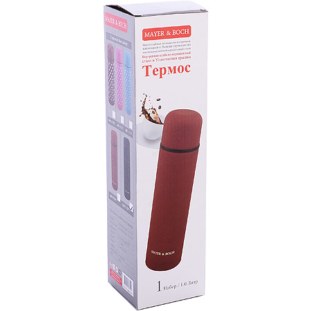Универсальный термос объёмом 1 литр от MAYER&BOCH — это компактное и лёгкое решение для сохранения температуры ваших любимых напитков на долгое время. Благодаря этому вы сможете наслаждаться их ароматом в любой момент. Термос небольшого размера, поэтому не займёт много места и легко поместится в сумку. Это делает его отличным вариантом для работы, учёбы или длительных поездок. Модель изготовлена из высококачественной нержавеющей стали, которая сохраняет вкусовые качества кофе или чая. Технология двойной стальной стенки обеспечивает вакуумную изоляцию, сохраняя температуру содержимого на длительное время. Термосы из нержавеющей стали сохраняют тепло и холод на протяжении 24 часов, обеспечивая надёжность и долговечность. Прочные материалы обеспечивают устойчивость к внешним воздействиям и предотвращают повреждения, в отличие от хрупких стеклянных моделей. Вакуумный закручивающийся клапан гарантирует надёжную защиту от протеканий, а эргономичная кнопка на крышке обеспечивает удобство использования. Крышку можно применять в качестве дополнительной чашки. В комплекте идёт чехол для удобного хранения и транспортировки. Подойдет как для горячих, так и для холодных напитков. Термос для детей — идеальный подарок новорождённому или родителям на выписку. Он поможет быстро накормить малыша в любом месте, а также обеспечит наилучший режим приёма пищи в школе. Его можно взять с собой на фитнес, в походы и на пикники. Он станет незаменимой вещью для рыбаков, охотников и туристов. Термобутылка отлично подходит для путешествий, её комфортно использовать в автомобиле и поезде. А летом он станет верным спутником на пляже. Его легко мыть, и он соответствует всем стандартам качества. Эта термопосуда — прекрасный выбор для активных и успешных людей. Она понравится каждому и станет отличным подарком на Новый год, День святого Валентина, 23 Февраля, 8 Марта, день рождения и Рождество.