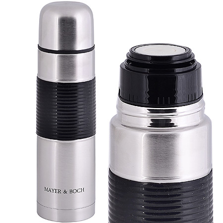 Универсальный термос объёмом 0,5 литра от MAYER&BOCH — это компактное и лёгкое решение для сохранения температуры ваших любимых напитков на долгое время. Благодаря этому вы сможете наслаждаться их ароматом в любой момент. Термос небольшого размера, поэтому не займёт много места и легко поместится в сумку. Это делает его отличным вариантом для работы, учёбы или длительных поездок. Модель изготовлена из высококачественной нержавеющей стали, которая сохраняет вкусовые качества кофе или чая. Технология двойной стальной стенки обеспечивает вакуумную изоляцию, сохраняя температуру содержимого на длительное время. Термосы из нержавеющей стали сохраняют тепло и холод на протяжении 24 часов, обеспечивая надёжность и долговечность. Они подходят как для горячих, так и для холодных напитков. Прочные материалы обеспечивают устойчивость к внешним воздействиям и предотвращают повреждения, в отличие от хрупких стеклянных моделей. Вакуумный закручивающийся клапан гарантирует надёжную защиту от протеканий, а эргономичная кнопка на крышке обеспечивает удобство использования. Крышку можно применять в качестве дополнительной чашки. Рельефная часть на корпусе обеспечивает удобный захват и предотвращает скольжение в руке. Термос для детей — идеальный подарок новорождённому или родителям на выписку. Он поможет быстро накормить малыша в любом месте, а также обеспечит наилучший режим приёма пищи в школе. Его можно взять с собой на фитнес, в походы и на пикники. Он станет незаменимой вещью для рыбаков, охотников и туристов. Термобутылка отлично подходит для путешествий, её комфортно использовать в автомобиле и поезде. А летом он станет верным спутником на пляже. Его легко мыть, и он соответствует всем стандартам качества. Эта термопосуда — прекрасный выбор для активных и успешных людей. Она понравится каждому и станет отличным подарком на Новый год, День святого Валентина, 23 Февраля, 8 Марта, день рождения и Рождество.