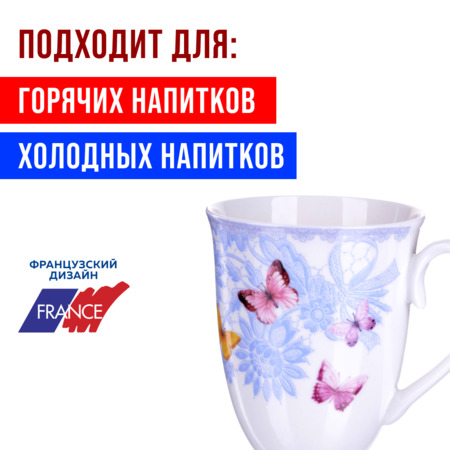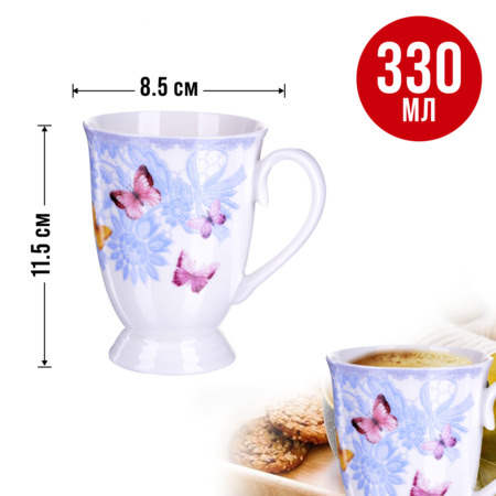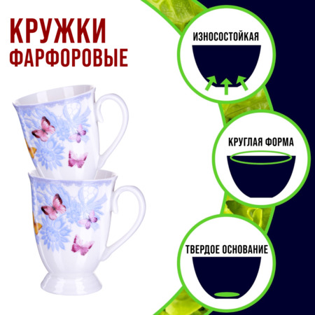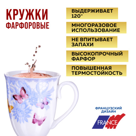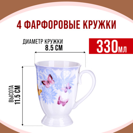 Набор кружек 4пр фарфоровая 300 мл Бабочка LR (х12).
