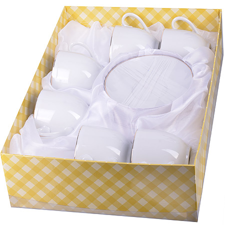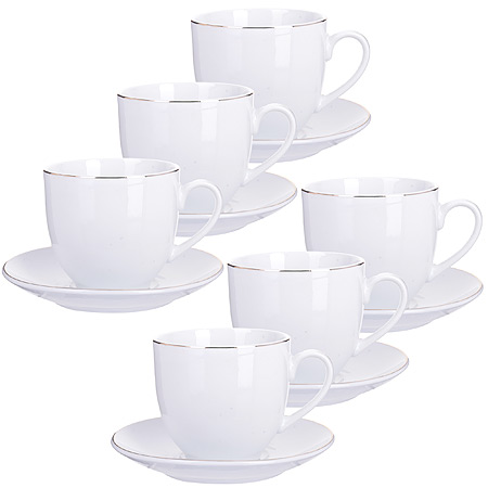 ОписаниеЧайный набор LORAINE на 6 персон, изготовленный из высококачественной керамики изысканного белого цвета, состоит из 6-ти чашек и 6-ти блюдец. Изделия набора украшены тонкой золотой каймой и имеют красивый и нежный дизайн. Набор придется по вкусу и ценителям классики, и тем, кто предпочитает утонченность и изысканность. Он настроит на позитивный лад и подарит хорошее настроение с самого утра. Набор упакован в подарочную упаковку. Такой чайный набор станет прекрасным украшением стола, а процесс чаепития превратится в одно удовольствие! Это замечательный выбор для подарка родным и друзьям!