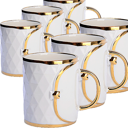Набор кружек LORAINE — это воплощение стиля, качества и практичности. В комплект входят 6 элегантных кружек, которые станут ярким акцентом вашего интерьера и подчеркнут вашу индивидуальность. Изготовленные из высококачественного фарфора, они обладают прочностью, долговечностью и устойчивостью к царапинам и сколам, что гарантирует их долгий срок службы и сохранение первоначального вида. Белый цвет и золотая окантовка придают кружкам роскошный и изысканный вид, делая их идеальным выбором для любого случая. Удобные и изящные ручки обеспечивают комфортное использование, позволяя наслаждаться каждым глотком любимого напитка. Большой объём 400 мл гарантирует, что вы сможете насладиться напитком в полной мере, не беспокоясь о том, что он быстро закончится. Стильный дизайн придётся по вкусу как ценителям классики, так и тем, кто предпочитает утончённость и элегантность. Универсальность чашек заключается в том, что они подходят как для горячих, так и для холодных напитков, чая и кофе. Набор кружек LORAINE станет прекрасным подарком для ваших друзей и близких, который будет напоминать о вас и радовать своим стильным дизайном. Благодаря возможности использования в посудомоечной машине, уход за чашками становится максимально простым и удобным. Не упустите возможность сделать свою жизнь ярче и красивее с набором кружек LORAINE!