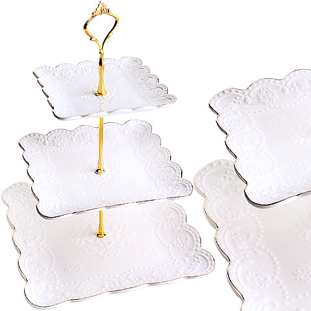 Элегантная треххъярусная конфетница от бренда LORAINE является великолепным дополнением любого праздничного стола. Она создана для того, чтобы украсить подачу различных сладостей, конфет, фруктов, орехов, пирожных, а также для сервировки овощных и мясных закусок. Эта оригинальная посуда для сервировки выполнена из высококачественной керамики с добавлением металлического покрытия, придающего ей роскошный золотистый оттенок. Трехъярусная конструкция блюда для подачи позволяет максимально эффективно использовать пространство, вмещая большое количество угощений. Уникальная форма каждого уровня этажерки создает дополнительную эстетику и позволяет наслаждаться каждой деталью. Верхний ярус украшен элегантной ручкой, а нижний ярус оформлен в виде устойчивого основания, обеспечивающего надежность всей конструкции. Дизайн этой конфетницы был тщательно продуман, чтобы она не только радовала глаз, но и была функциональна. Устойчивость сервировочной посуды, простота в использовании делают ее незаменимой на любом празднике или торжестве. Важным преимуществом данной керамической этажерки является ее универсальность – она отлично подходит как для повседневного использования, так и для особых случаев. Компактные размеры позволяют ей гармонично вписаться в любой интерьер, привнося атмосферу утонченность и элегантность. Эта белая фруктовница этажерка будет идеальным подарком для людей, ценящих красоту и комфорт в быту. Этажерка для фруктов и конфет от LORAINE – это не просто декоративный элемент, а настоящее произведение искусства, способное превратить обычную трапезу в настоящий праздник вкуса и эстетики.