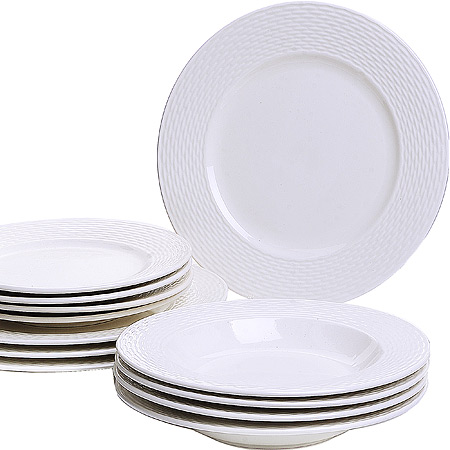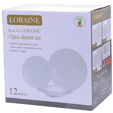 ОписаниеНабор посуды LORAINE выполнен из фарфора. Набор предназначен для сервировки обеденного стола. Включает в себя 12 предметов и рассчитан на четыре персоны: обеденные тарелки 4 шт, суповые тарелки 4 шт, десертные тарелки 4 шт. Форма изделий круглая. Классический дизайн сочетается в нем с максимальной функциональностью. Такой набор послужит отличным подарком к любому празднику, а также добавит элегантности и уюта любому праздничному столу! Посуда обладает гладкой непористой поверхностью, не впитывает запахи, устойчива к перепадам температуры и легко моется. Можно использовать данную посуду в микроволной печи. Подходит для мытья в посудомоечной машине.