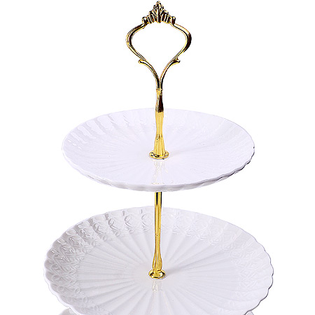 Элегантная конфетница на ножке с двумя ярусами LORAINE станет настоящим украшением любого стола, поможет хозяйке красиво подать конфеты, фрукты, орехи, выпечку, овощи и даже закуски из мясных и сырных деликатесов. Блюдо на ножке выполнено из высококачественного фарфора и оформлено оригинальным орнаментом. Стойка-держатель выполнена из металла с серебряным покрытием. Благодаря своей трехъярусной конструкции, этажерка на стол позволит вам разместить большое количество сладостей. Ножка фруктовницы обеспечивает ей высокую устойчивость, что делает ее безопасной для использования даже на самых неровных поверхностях. Вы можете быть уверены, что ваша ваза для фруктов будет стоять надежно, не опасаясь, что она может перевернуться или сломаться. Фруктовница двухъярусная прекрасно подойдёт под любой интерьер и будет сочетаться с сервировочной посудой, а компактные размеры позволят разместить ее даже на небольшом праздничном столе. Эта красивая посуда для дома украсит сервировку вашего стола и подчеркнет прекрасный вкус хозяина, а также станет отличным подарком.