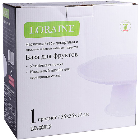 ОписаниеФруктовница LORAINE выполнена из фарфора высокого качества. Широкая ваза на толстой массивной ножке предназначена для подачи различных сладостей или фруктов. Середина блюда плоская, что позволит использовать ее как тортовницу. Изящная классическая ваза для фруктов станет прекрасным дополнением к набору посуды, отлично подойдет для сервировки праздничного стола. Такая посуда станет прекрасным подарком для женщин: мам, бабушек, подруг, коллег. Легко и быстро моется.