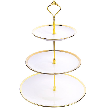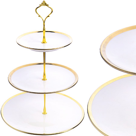 Элегантная треххъярусная конфетница от бренда LORAINE является великолепным дополнением любого праздничного стола. Она создана для того, чтобы украсить подачу различных сладостей, конфет, фруктов, орехов, пирожных, а также для сервировки овощных и мясных закусок. Эта оригинальная посуда для сервировки выполнена из высококачественного фарфора с добавлением металлического покрытия, придающего ей роскошный золотистый оттенок. Трехъярусная конструкция блюда для подачи позволяет максимально эффективно использовать пространство, вмещая большое количество угощений. Уникальная форма каждого уровня этажерки создает дополнительную эстетику и позволяет наслаждаться каждой деталью. Верхний ярус украшен элегантной ручкой, а нижний ярус оформлен в виде устойчивого основания, обеспечивающего надежность всей конструкции. Дизайн этой конфетницы был тщательно продуман, чтобы она не только радовала глаз, но и была функциональна. Устойчивость сервировочной посуды, простота в использовании делают ее незаменимой на любом празднике или торжестве. Важным преимуществом данной фарфоровой этажерки является ее универсальность – она отлично подходит как для повседневного использования, так и для особых случаев. Компактные размеры позволяют ей гармонично вписаться в любой интерьер, привнося атмосферу утонченность и элегантность. Эта белая фруктовница этажерка будет идеальным подарком для людей, ценящих красоту и комфорт в быту. Этажерка для фруктов и конфет от LORAINE – это не просто декоративный элемент, а настоящее произведение искусства, способное превратить обычную трапезу в настоящий праздник вкуса и эстетики.