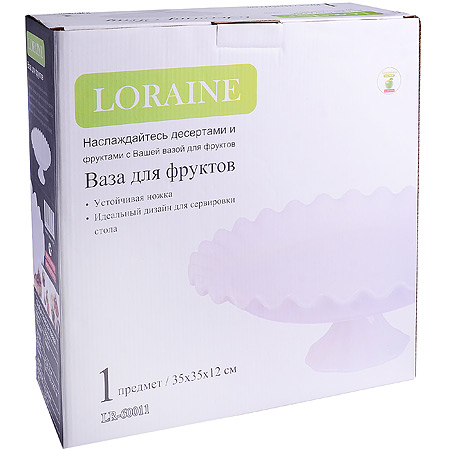 ОписаниеФруктовница LORAINE выполнена из фарфора высокого качества и украшена оригинальным волнистым краем. Широкая ваза на изящной ножке предназначена для подачи различных сладостей или фруктов. Середина блюда плоская, что позволит использовать ее как тортовницу. Благодаря большим размерам вазочки, в нее поместится много продуктов. Изящная классическая ваза для фруктов станет прекрасным дополнением к набору посуды, отлично подойдет для сервировки праздничного стола. Такая посуда станет прекрасным подарком для женщин: мам, бабушек, подруг, коллег. Легко и быстро моется.