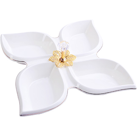 Элегантная менажница LORAINE - это красивая посуда для сервировки, секционная тарелка, функциональная миска для дома. С нашей посудой сервировка будет вас радовать. Менажница фарфоровая оригинальной формы, состоящая из 4 секций. Менажница керамика подходит для сервировки и подачи как закусок, так и сладостей. Тарелка для сыра изготовлена из фарфора. Менажница фарфор можно использовать как сырная тарелка, тарелка секционная. Менажница для сыра поможет создать собственный, неповторимый стиль. Менажница белая подходит подойдёт для закусок, сухофруктов, снеков, соусов, а также для орехов менажница. Тарелка для нарезки понадобится для организации любого стола. Менажница для орехов подойдет для варенья, меда и конфет. Менажница керамическая подойдет для специй, подайте их на стол к мясным блюдам. Менажница большая, менажница глубокая имеет очень вместительные секции. Менажница для фруктов подойдет для нарезки фруктов и овощей. Менажница керамика белая - настоящее украшение любого стола. Менажница фарфоровая - отличный подарок маме, подарок сестре, подарок подруге, бабушке!