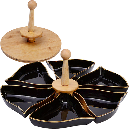 Элегантная менажница LORAINE — это изысканное произведение искусства, созданное для тех, кто ценит утончённость и комфорт. Вращающаяся конструкция позволяет легко поворачивать всю менажницу на 360 градусов, обеспечивая быстрый и удобный доступ к предметам. Изготовленная из высококачественного фарфора, она поражает своей красотой и оригинальностью. Круглая форма этого блюда, разделённого на шесть отдельных съёмных секций, обеспечивает удобство использования. Удобная деревянная ручка для переноски делает её не только функциональной, но и эстетически привлекательной. Благодаря этому, она идеально подходит для подачи разнообразных закусок, сладостей, фруктов, сыра, орехов, соусов, снеков, сухофруктов, варенья, мёда и конфет. Прочность и долговечность фарфора обеспечивают изделию долгий срок службы, что позволит наслаждаться его красотой и функциональностью на протяжении многих лет. Менажница LORAINE станет незаменимым элементом вашего стола, помогая создавать неповторимый стиль и атмосферу уюта. Кроме того, она прекрасно подойдёт для подачи различных блюд, будь то мясные или овощные закуски, салаты или десерт. Не упустите возможность порадовать своих близких и друзей этим великолепным подарком. Блюдо сервировочное LORAINE станет незабываемым подарком для мамы, сестры, бабушки или друзей, выражая вашу заботу и внимание к их вкусам и предпочтениям.