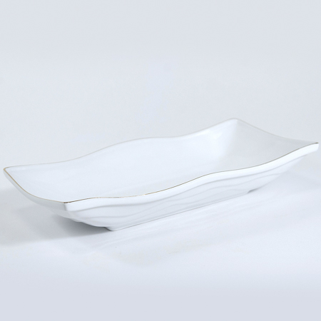 Блюдо сервировочное LORAINE – это стильное решение для любого торжества. Этот элемент декора создаст атмосферу роскоши на вашем празднике. Посуда для сервировки изготовлена из керамики высокого качества. Окантовка золотого цвета придает изделию особый шик и элегантность, подчеркивая его премиальность. Благодаря своим размерам 28,5х13,5х4,5 см блюдо для подачи подойдет для легких закусок, фруктов, овощей, свежей выпечки, десертов, печенья, сыров, салатов, и даже для таких блюд как шашлык, плов, картофель, блюда из рыбы и мяса – эта посуда сервировочная справится со всеми кулинарными задачами. Блюдо прямоугольное LORAINE сочетает в себе функциональность и эстетику. Возможность мытья в посудомоечной машине делает уход за ним максимально простым и удобным. Практичность и удобство использования делают эту посуду для сервировки незаменимым помощником на кухне. Такое декоративное блюдо обязательно понравится тем, кто ценит практичность и красоту в одном предмете. Это блюдо сервировочное белое может стать замечательным подарком для истинных ценителей эстетики и оформления стола. Оно подарит радость от каждой трапезы и будет радовать глаз своей изысканностью. Добавьте нотку элегантности и уюта вашему столу вместе с LORAINE!