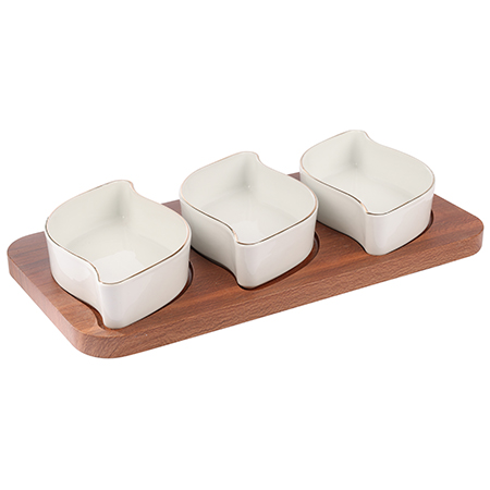 Менажница LORAINE — настоящая находка для тех, кто стремится превратить обыденный прием пищи в настоящий праздник вкуса и эстетики. Посуда для сервировки выполнена из высококачественной керамики, известной своими превосходными эксплуатационными характеристиками и непревзойденной красотой. Белый цвет подчеркивает чистоту и благородство материала, придавая изделию особую элегантность. Набор менажниц состоит из 3 отдельных тарелок для нарезки, сладостей, соединенных между собой для максимального удобства использования. Каждая секция имеет объем 300 мл, что позволяет одновременно подавать несколько видов закусок, десертов, фруктов, сыров, орехов, соусов, снеков, сухофруктов, варенья, меда и конфет. Устойчивая подставка облегчает перенос блюда, обеспечивая надежность и безопасность при использовании. Такое решение делает менажницу не только стильным аксессуаром, но и практичным инструментом для создания красивой сервировки. Блюдо подходит для различных типов мероприятий — от семейного ужина до званого обеда, позволяя продемонстрировать гостям ваш вкус и внимание к деталям. Прочность и долговечность керамики гарантируют, что подарочная посуда сохранит свой первоначальный вид и функциональность на протяжении многих лет. Оформление каждой секции отличается оригинальностью и изысканностью, привлекая внимание и вызывая восхищение у всех присутствующих. Стильный дизайн гармонично сочетается с любым интерьером, добавляя нотку роскоши и уюта в атмосферу помещения. Этот набор посуды не только удобен в использовании, но и функционален. Он позволяет эффектно подать разнообразные блюда, будь то холодные закуски, горячие мясные блюда, свежие салаты или изысканные десерты, а также собрать сырную тарелку или пивную тарелку. Каждое угощение будет выглядеть аппетитно и привлекательно, благодаря продуманному разделению на порции. Менажница керамическая станет настоящим украшением вашей кухни и отличным подарком для друзей и близких, которые ценят эстетичную посуду и изысканную сервировку.