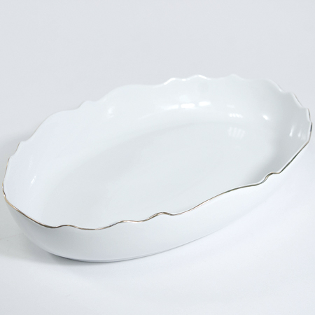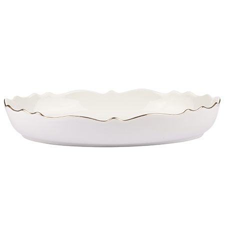 Блюдо сервировочное LORAINE – это стильное решение для любого торжества. Этот элемент декора создаст атмосферу роскоши на вашем празднике. Посуда для сервировки изготовлена из керамики высокого качества. Окантовка золотого цвета придает изделию особый шик и элегантность, подчеркивая его премиальность. Благодаря своим размерам 32,5x22x5,5 см блюдо для подачи подойдет для легких закусок, фруктов, овощей, свежей выпечки, десертов, печенья, сыров, салатов, и даже для таких блюд как шашлык, плов, картофель, блюда из рыбы и мяса – эта посуда сервировочная справится со всеми кулинарными задачами. Блюдо овальное LORAINE сочетает в себе функциональность и эстетику. Возможность мытья в посудомоечной машине делает уход за ним максимально простым и удобным. Практичность и удобство использования делают эту посуду для сервировки незаменимым помощником на кухне. Такое декоративное блюдо обязательно понравится тем, кто ценит практичность и красоту в одном предмете. Это блюдо сервировочное белое может стать замечательным подарком для истинных ценителей эстетики и оформления стола. Оно подарит радость от каждой трапезы и будет радовать глаз своей изысканностью. Добавьте нотку элегантности и уюта вашему столу вместе с LORAINE!