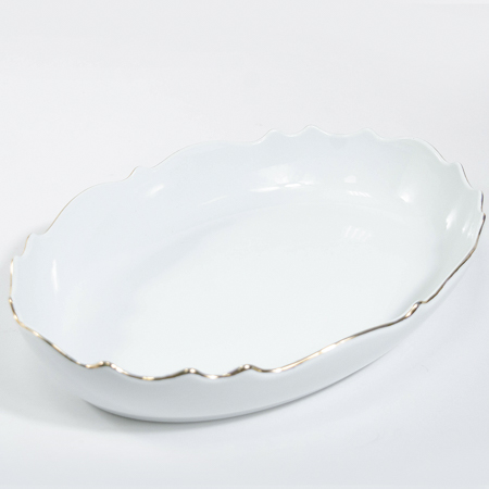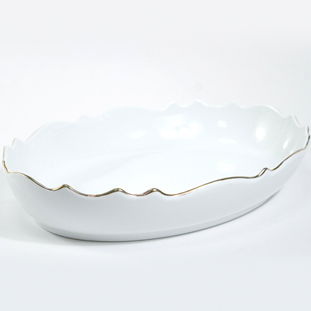 Блюдо сервировочное LORAINE – это стильное решение для любого торжества. Этот элемент декора создаст атмосферу роскоши на вашем празднике. Посуда для сервировки изготовлена из керамики высокого качества. Окантовка золотого цвета придает изделию особый шик и элегантность, подчеркивая его премиальность. Благодаря своим размерам 37x25x6 см блюдо для подачи подойдет для легких закусок, фруктов, овощей, свежей выпечки, десертов, печенья, сыров, салатов, и даже для таких блюд как шашлык, плов, картофель, блюда из рыбы и мяса – эта посуда сервировочная справится со всеми кулинарными задачами. Блюдо овальное LORAINE сочетает в себе функциональность и эстетику. Возможность мытья в посудомоечной машине делает уход за ним максимально простым и удобным. Практичность и удобство использования делают эту посуду для сервировки незаменимым помощником на кухне. Такое декоративное блюдо обязательно понравится тем, кто ценит практичность и красоту в одном предмете. Это блюдо сервировочное белое может стать замечательным подарком для истинных ценителей эстетики и оформления стола. Оно подарит радость от каждой трапезы и будет радовать глаз своей изысканностью. Добавьте нотку элегантности и уюта вашему столу вместе с LORAINE!