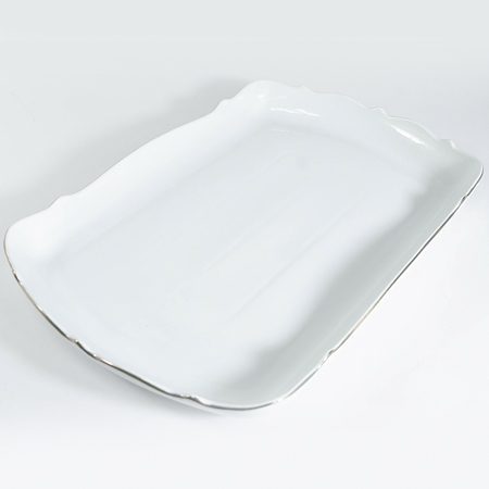 Блюдо сервировочное LORAINE – это стильное решение для любого торжества. Этот элемент декора создаст атмосферу роскоши на вашем празднике. Посуда для сервировки изготовлена из керамики высокого качества. Окантовка золотого цвета придает изделию особый шик и элегантность, подчеркивая его премиальность. Благодаря своим размерам 40,5x26,5x4 см блюдо для подачи подойдет для легких закусок, фруктов, овощей, свежей выпечки, десертов, печенья, сыров, салатов, и даже для таких блюд как шашлык, плов, картофель, блюда из рыбы и мяса – эта посуда сервировочная справится со всеми кулинарными задачами. Блюдо прямоугольное LORAINE сочетает в себе функциональность и эстетику. Возможность мытья в посудомоечной машине делает уход за ним максимально простым и удобным. Практичность и удобство использования делают эту посуду для сервировки незаменимым помощником на кухне. Такое декоративное блюдо обязательно понравится тем, кто ценит практичность и красоту в одном предмете. Это блюдо сервировочное белое может стать замечательным подарком для истинных ценителей эстетики и оформления стола. Оно подарит радость от каждой трапезы и будет радовать глаз своей изысканностью. Добавьте нотку элегантности и уюта вашему столу вместе с LORAINE!
