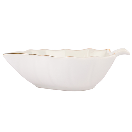 Блюдо сервировочное LORAINE – это стильное решение для любого торжества. Этот элемент декора создаст атмосферу роскоши на вашем празднике. Посуда для сервировки изготовлена из керамики высокого качества. Окантовка золотого цвета придает изделию особый шик и элегантность, подчеркивая его премиальность. Благодаря своим размерам 13х8,5х3,5 см блюдо для подачи подойдет для легких закусок, фруктов, овощей, свежей выпечки, десертов, печенья, сыров, салатов, и даже для таких блюд как шашлык, плов, картофель, блюда из рыбы и мяса – эта посуда сервировочная справится со всеми кулинарными задачами. Блюдо в форме листочка сочетает в себе функциональность и эстетику. Возможность мытья в посудомоечной машине делает уход за ним максимально простым и удобным. Практичность и удобство использования делают эту посуду для сервировки незаменимым помощником на кухне. Такое декоративное блюдо обязательно понравится тем, кто ценит практичность и красоту в одном предмете. Это блюдо сервировочное белое может стать замечательным подарком для истинных ценителей эстетики и оформления стола. Оно подарит радость от каждой трапезы и будет радовать глаз своей изысканностью. Добавьте нотку элегантности и уюта вашему столу вместе с LORAINE!