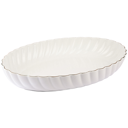 Блюдо сервировочное LORAINE – это стильное решение для любого торжества. Этот элемент декора создаст атмосферу роскоши на вашем празднике. Посуда для сервировки изготовлена из керамики высокого качества. Окантовка золотого цвета придает изделию особый шик и элегантность, подчеркивая его премиальность. Благодаря своим размерам 36x26x6 см блюдо для подачи подойдет для легких закусок, фруктов, овощей, свежей выпечки, десертов, печенья, сыров, салатов, и даже для таких блюд как шашлык, плов, картофель, блюда из рыбы и мяса – эта посуда сервировочная справится со всеми кулинарными задачами. Блюдо овальное LORAINE сочетает в себе функциональность и эстетику. Возможность мытья в посудомоечной машине делает уход за ним максимально простым и удобным. Практичность и удобство использования делают эту посуду для сервировки незаменимым помощником на кухне. Такое декоративное блюдо обязательно понравится тем, кто ценит практичность и красоту в одном предмете. Это блюдо сервировочное белое может стать замечательным подарком для истинных ценителей эстетики и оформления стола. Оно подарит радость от каждой трапезы и будет радовать глаз своей изысканностью. Добавьте нотку элегантности и уюта вашему столу вместе с LORAINE!