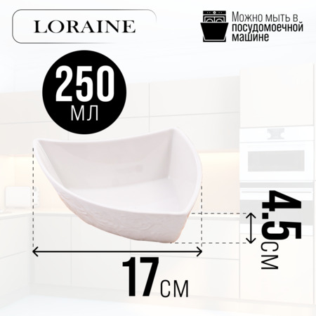 Размер блюда: объем 250 мл, длина 17 см ширина 12 см, высота 4,5 см.