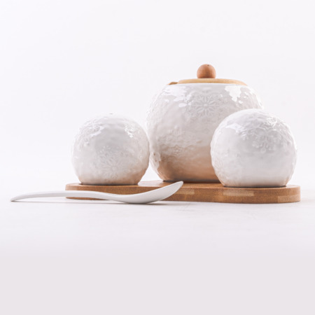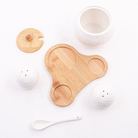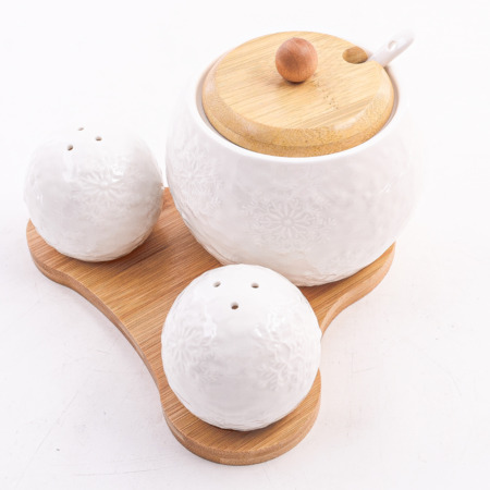 Набор: сахарница 1 шт, баночки для специй 2 шт, подставка 1 шт, ложечка 1 шт, крышка 1 шт.
