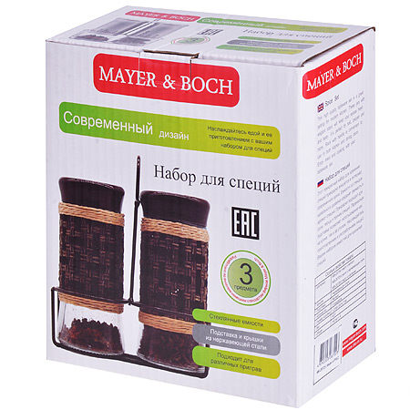 Набор MAYER&BOCH из баночек для специй выполнен из стекла. Баночки располагаются на оригинальной металлической подставке, что делает их хранение еще более удобным. Набор предназначен для хранения различных ароматных специй, герметично закрывающиеся крышки сохранит ваши специи всегда свежими. Современный, элегантный дизайн набора украсит интерьер любой кухни. Изделия не впитывают запах и легко моются.